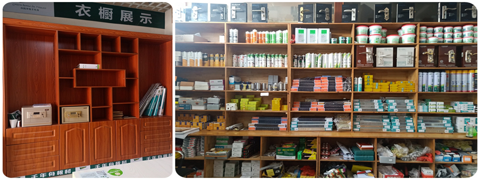 经 营 千年舟地板、细木工板、多层板石膏板、 各种装饰板、集成板、五金、 扣板、木线、订制式工艺门等